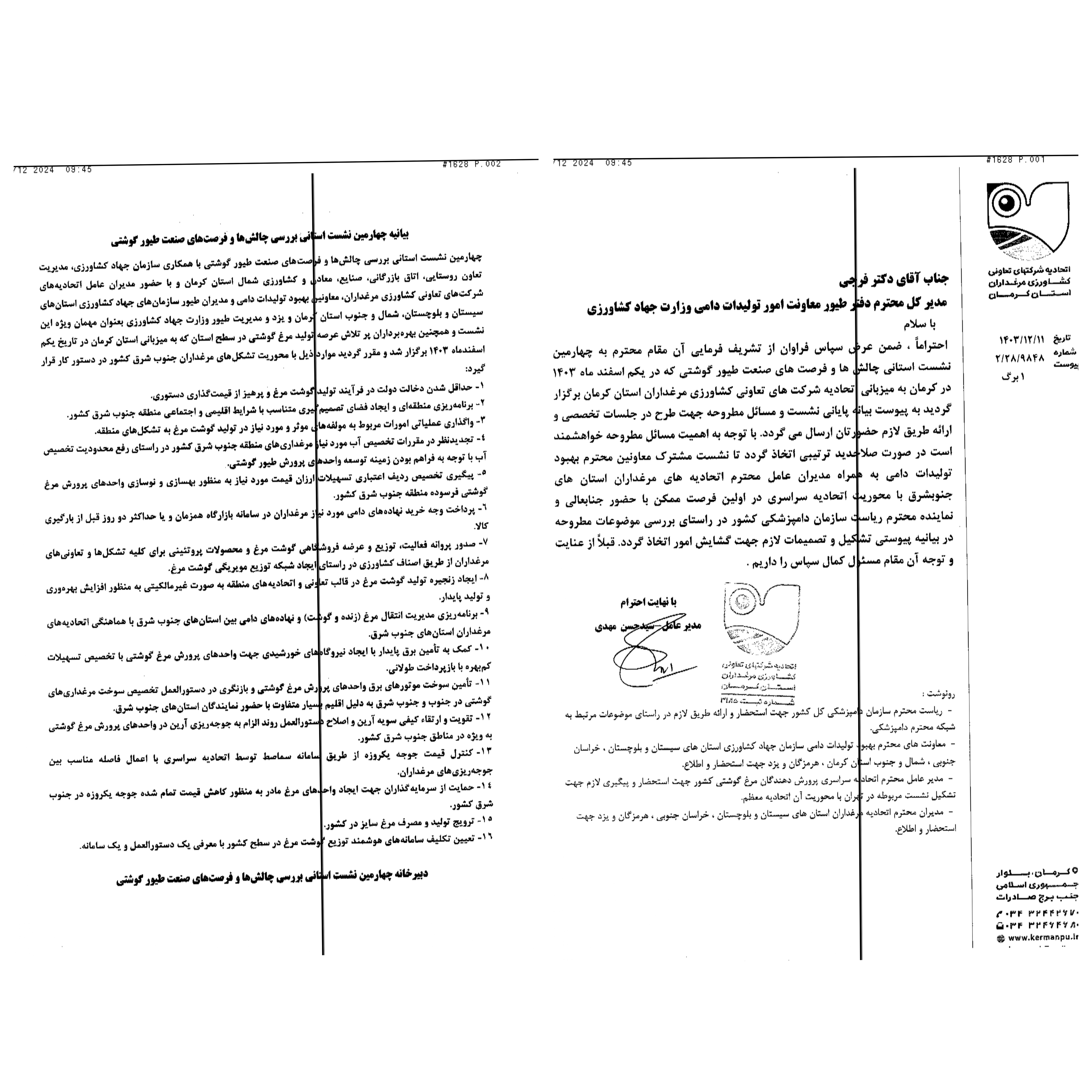مدیرعامل اتحادیه مرغداران استان کرمان اعلام کرد: برنامهریزی استان کرمان برای خودکفایی در تولید گوشت مرغ تا ۱۴۰۴…