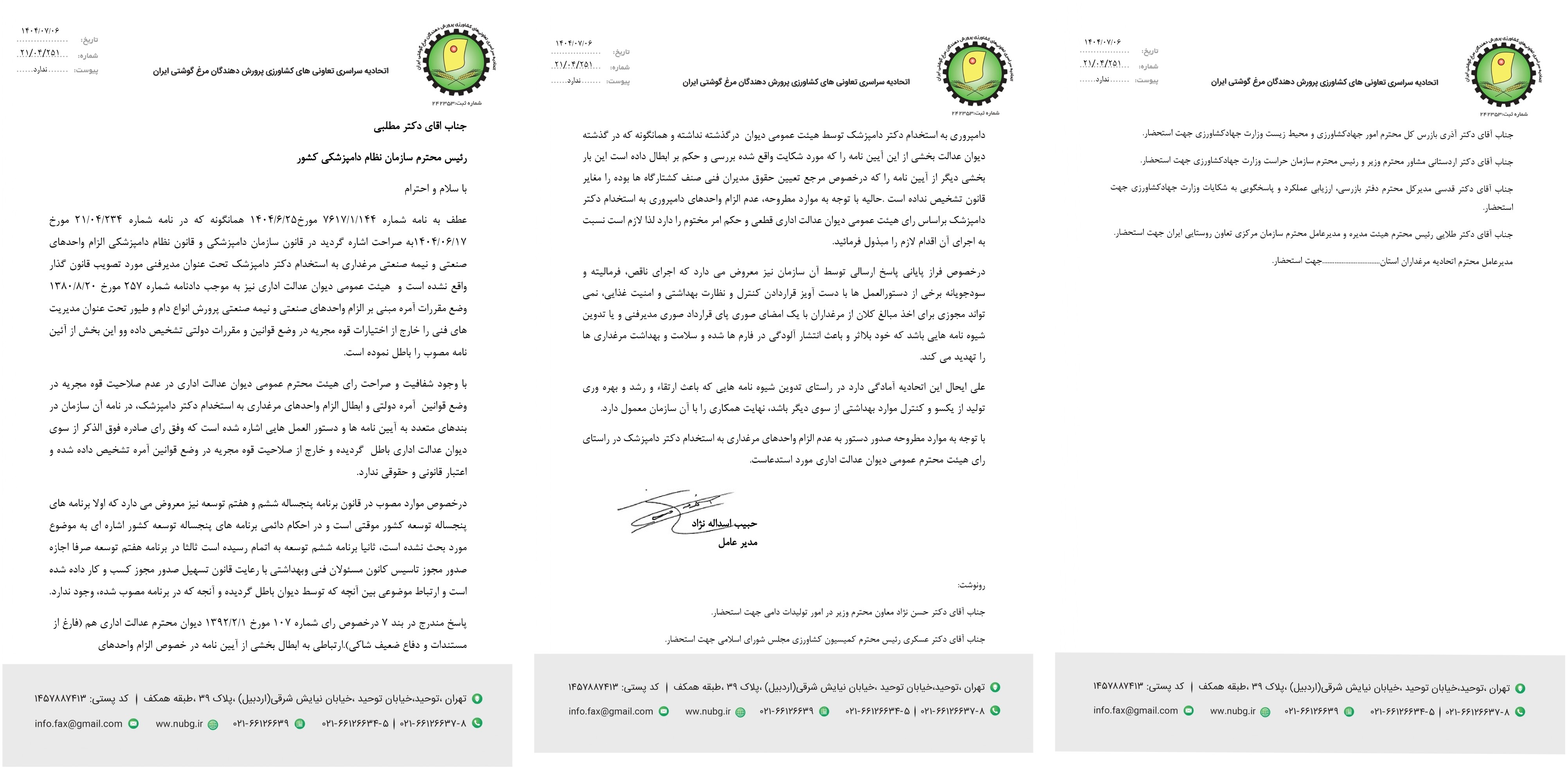 🔺 پاسخ صریح و قاطع اتحادیه سراسری مرغداران کشور به سازمان نظام دامپزشکی در خصوص عدم الزام بکارگیری دکتر دامپزشک…